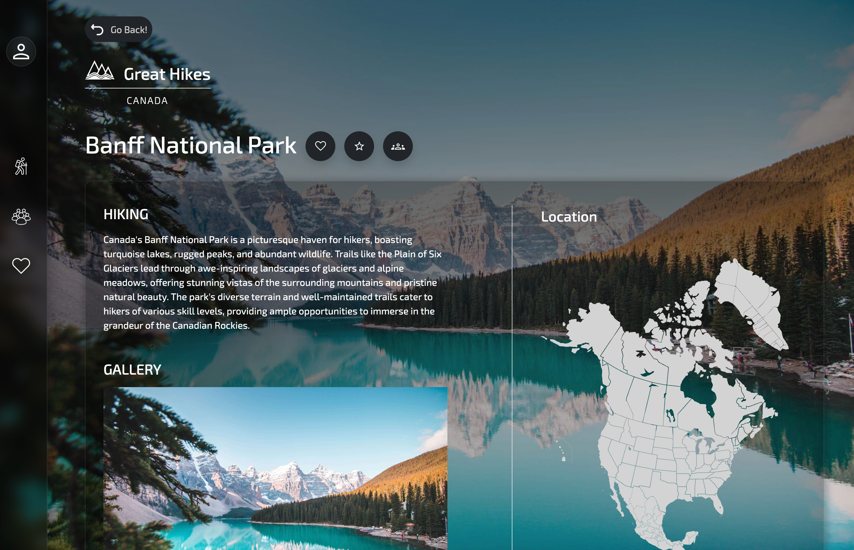 Developed a React-based web application with a focus on visual storytelling and user experience. Implemented a clean, modern interface that highlights stunning photography of hiking destinations. Created interactive features including destination browsing, location maps, and detailed information pages for each hiking location.